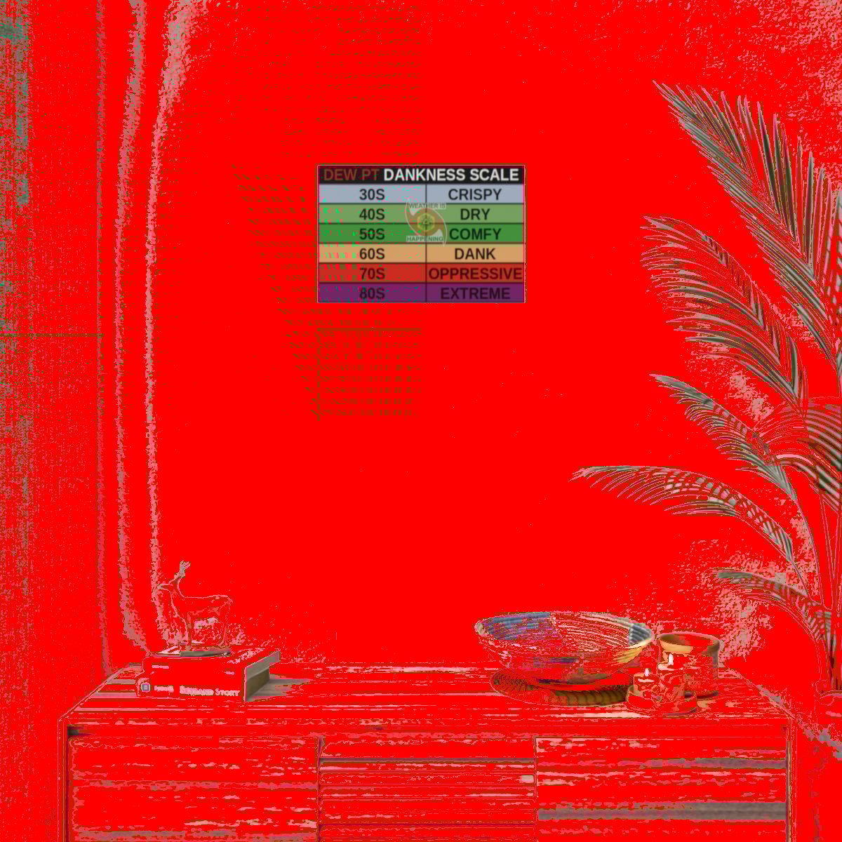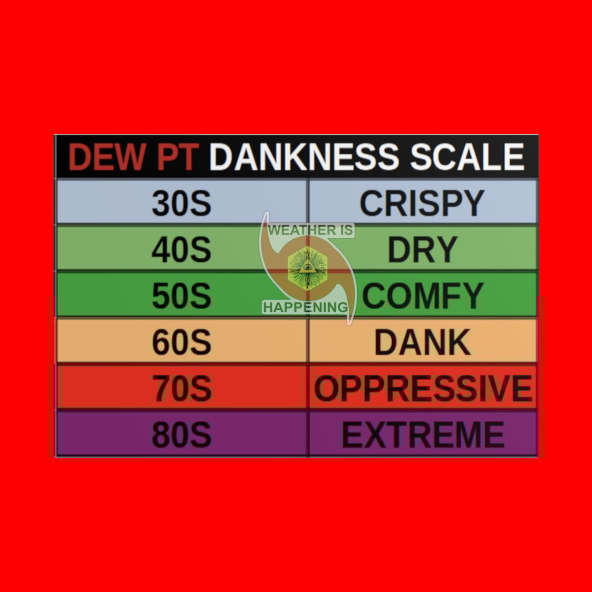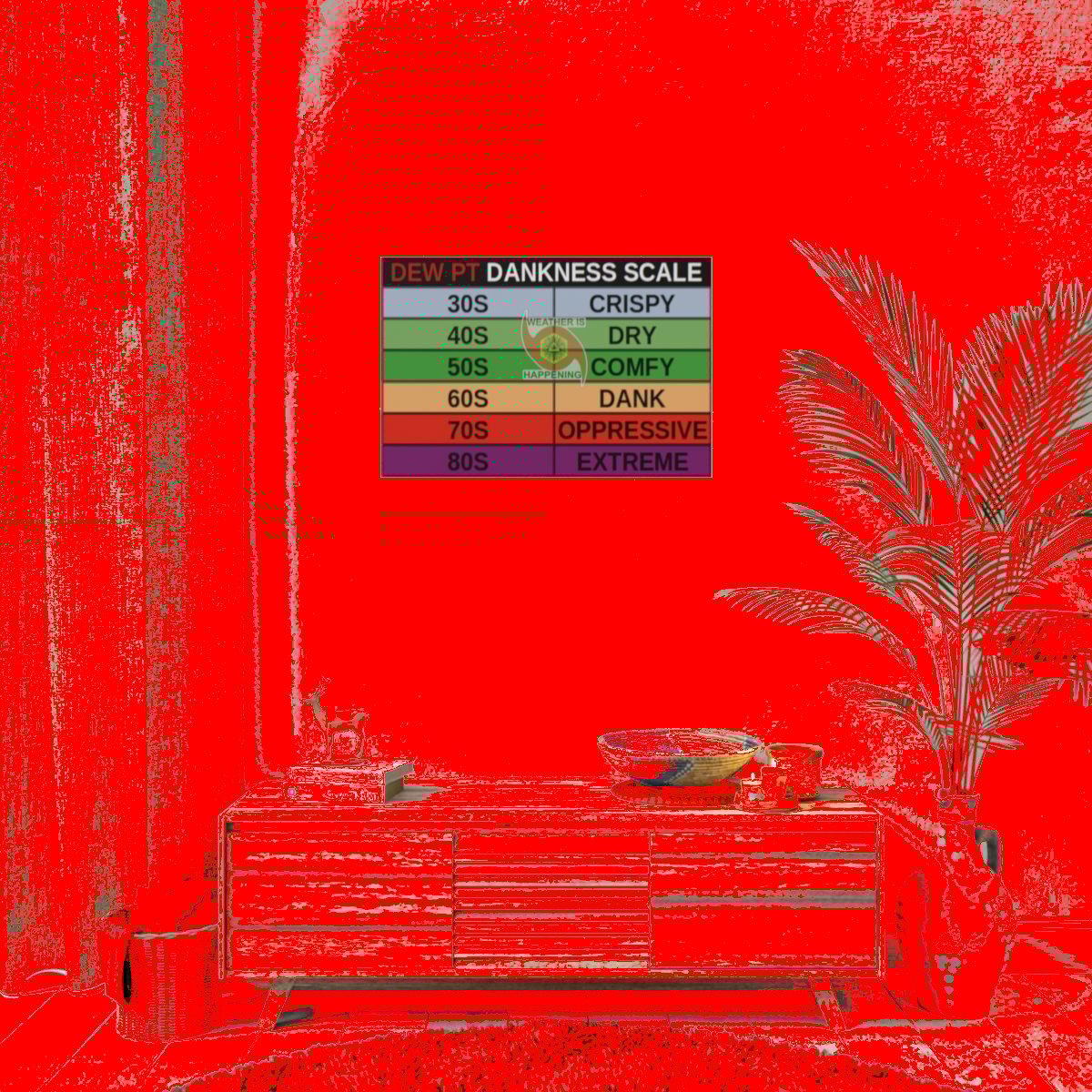 THIS SPESH POSTER WILL REMIND U NE TIME U NEED AS 2 WAT A DEW PT IS GOING 2 FEEL LIKE ON UR BODY IN TERMS OF DANKNESS (HUMIDNESS). THIS WAY U WILL NEVER 4GET. W/ A WEATHER IS HAPPENING LOGO SO U CULD STAR IN2 THE EYE OF UR WEATHER LORDS & REPENT