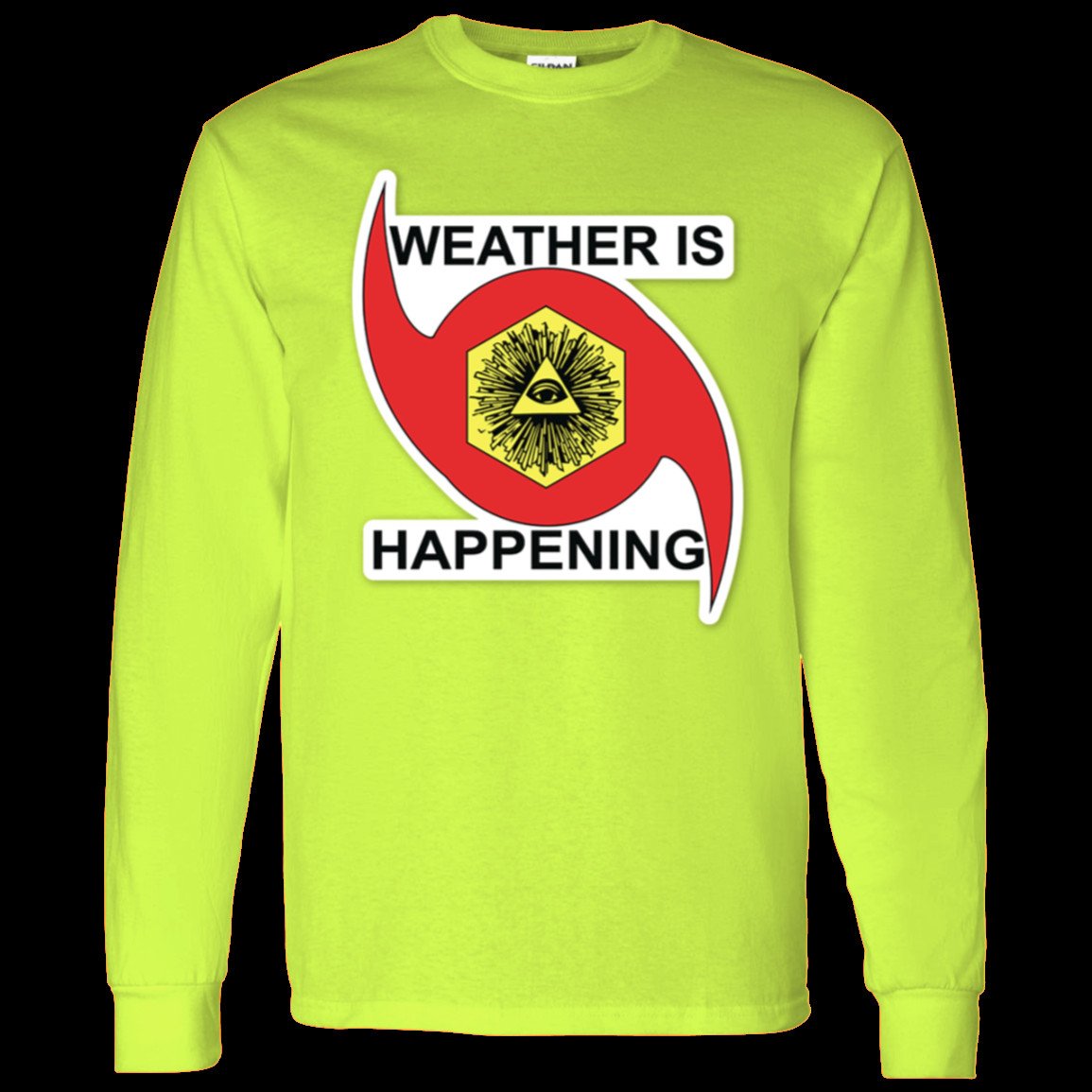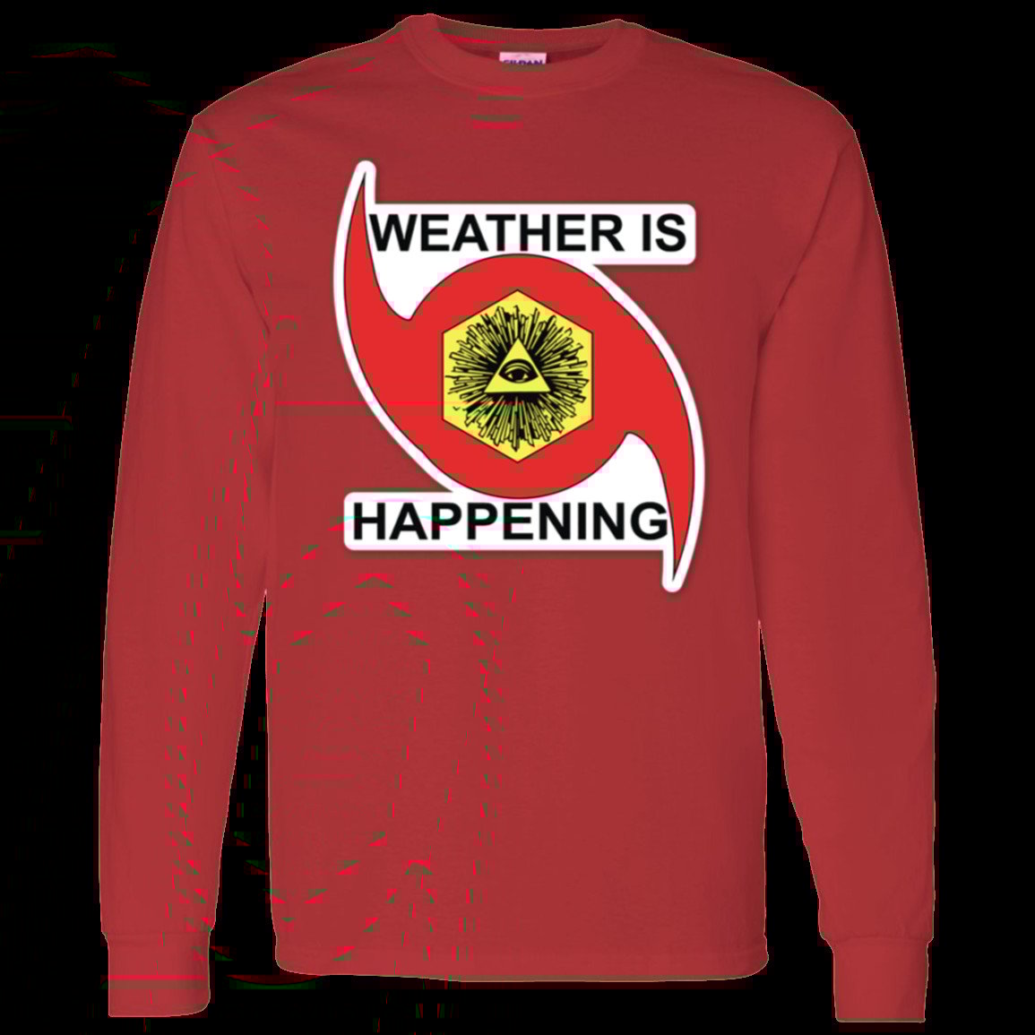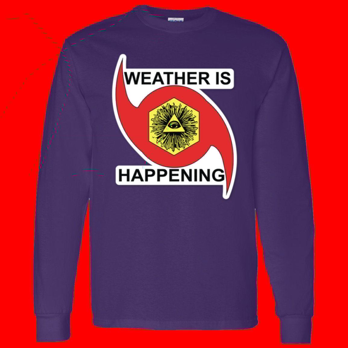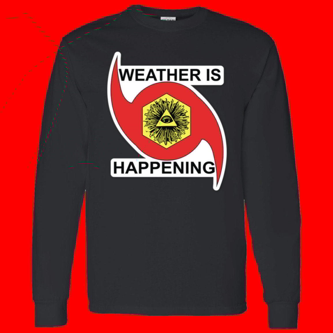 WEAR UR WEATHER IS HAPPENING WEATHER ACOLYTE LONG SLEEVE TSHIRT 2 LET TH OBSERVANT PPL AROUND U BECOME WEATHER AWARE, AS THEY REALIZE WEATHER IS HAPPENING. & PERHAPS THIS IS A OPENING 4 U 2 TELL THEM ABOUT THEIR ND 4 REPENTANCE 2 UR WEATHER LORDS