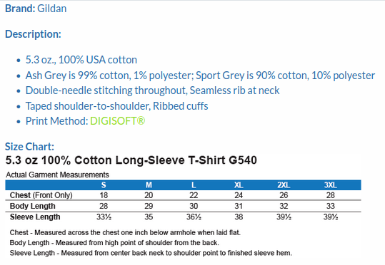 GILDAN G540 LONG SLEEVE T-SHIRT 5.3 OZ.
