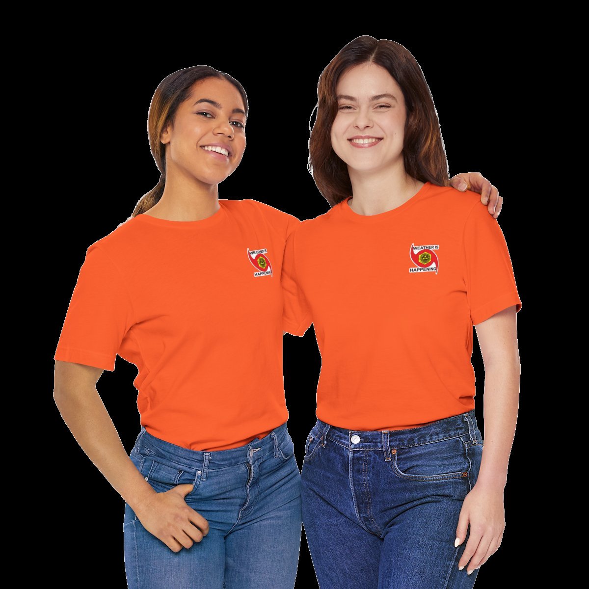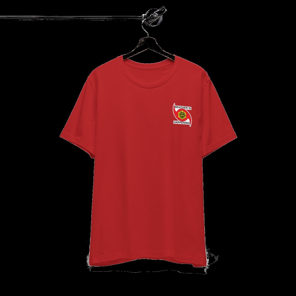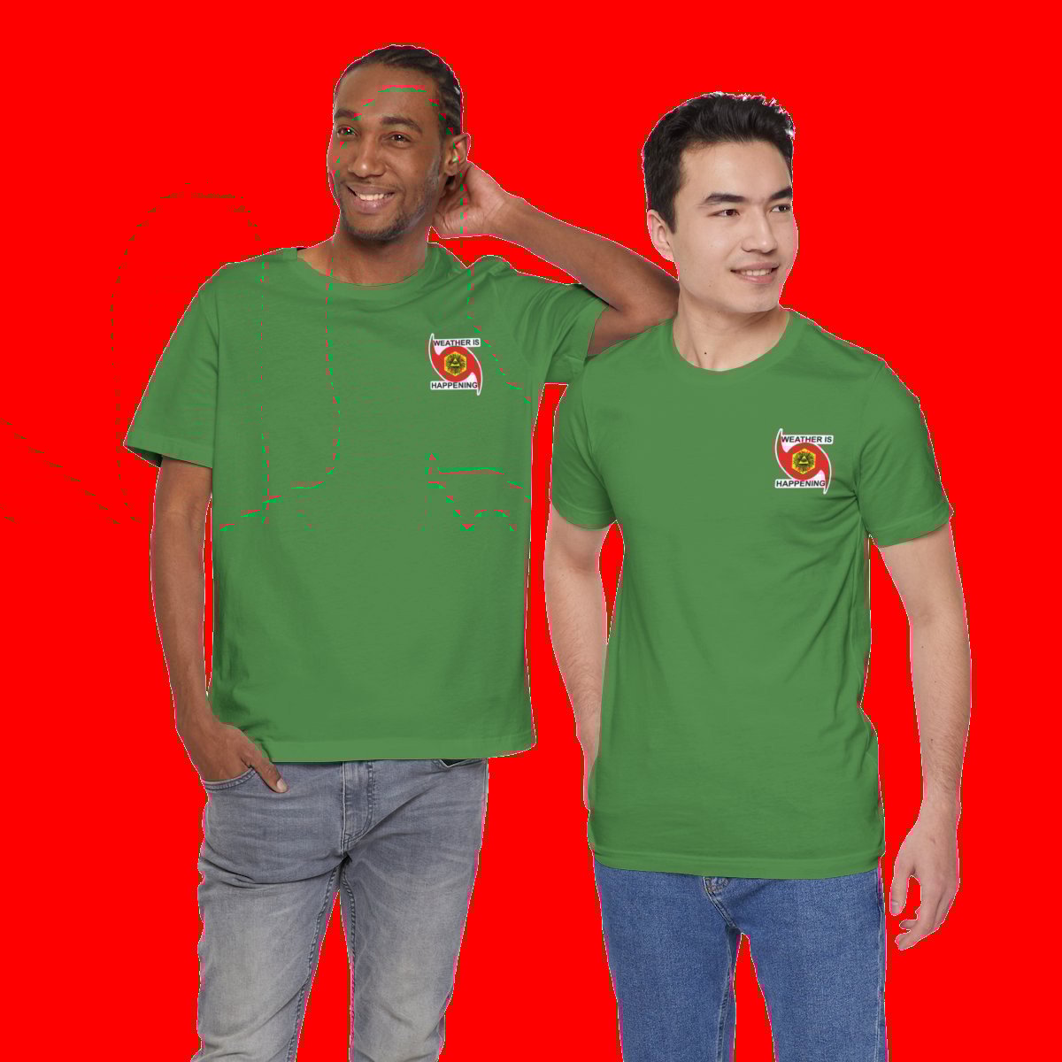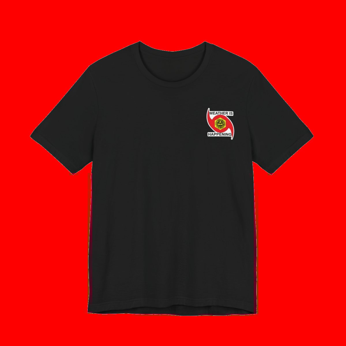 THE WEATHER IS HAPPENING BADGE CREW NECK UNISEX TSHIRT