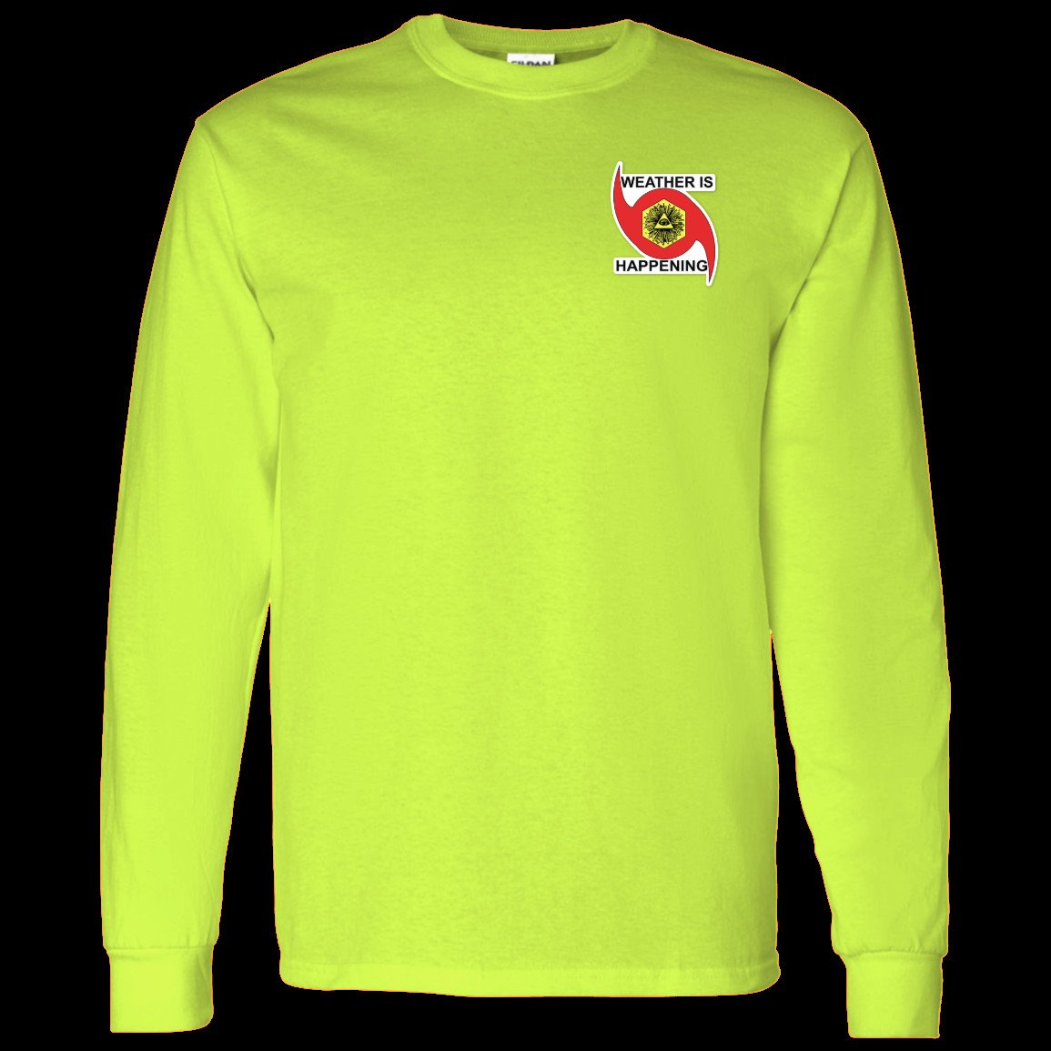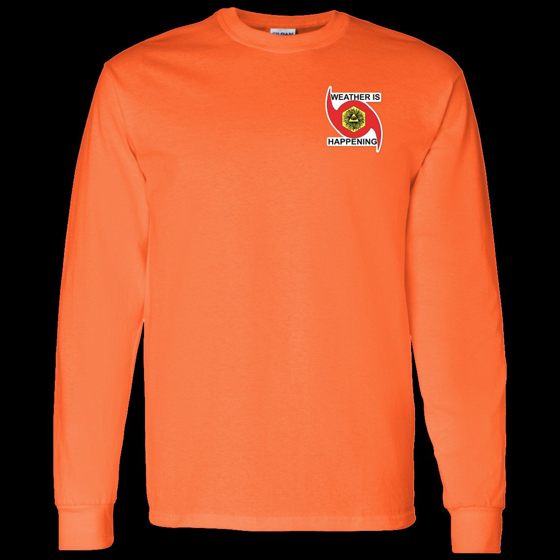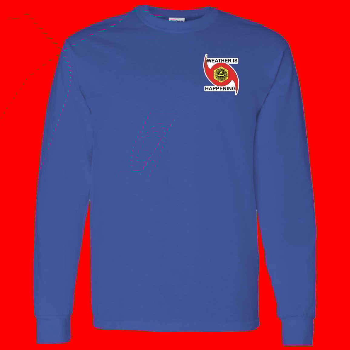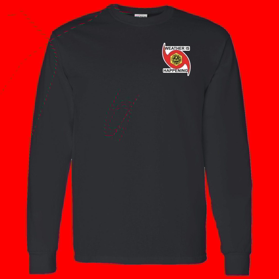 WEAR UR WEATHER IS HAPPENING WEATHER BADGE LONG SLEEVE T-SHIRT 2 LET TH OBSERVANT PPL AROUND U KNOW THAT WEATHER IS HAPPENING. AS THEY REALIZE WEATHER IS HAPPENING. & PERHAPS THIS IS A OPENING 4 U 2 TELL THEM ABOUT THAIR ND 4 REPENTANCE 2 UR WEATHER LORDS