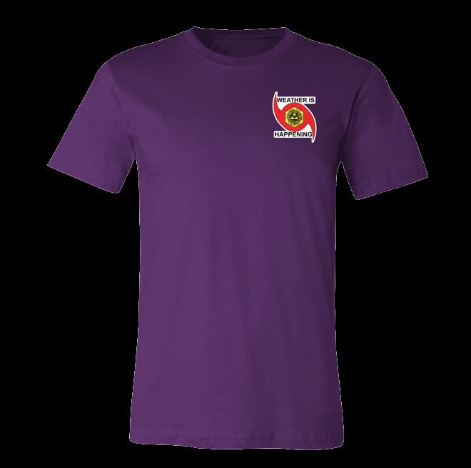 THE WEATHER IS HAPPENING BADGE CREW NECK UNISEX TSHIRT