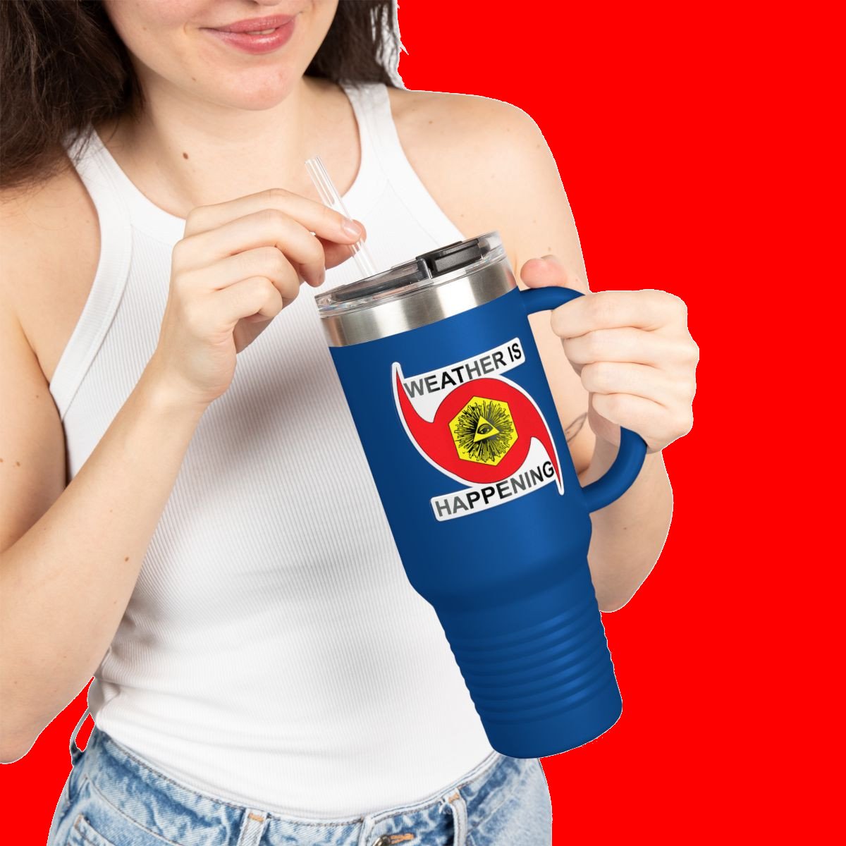 THE WEATHER IS HAPPENING INSULATED 40 OZ TRAVEL MUG W/ STRAW