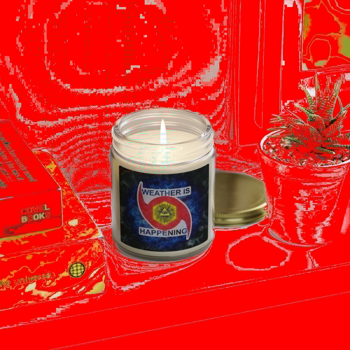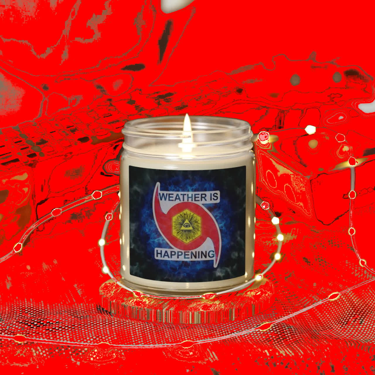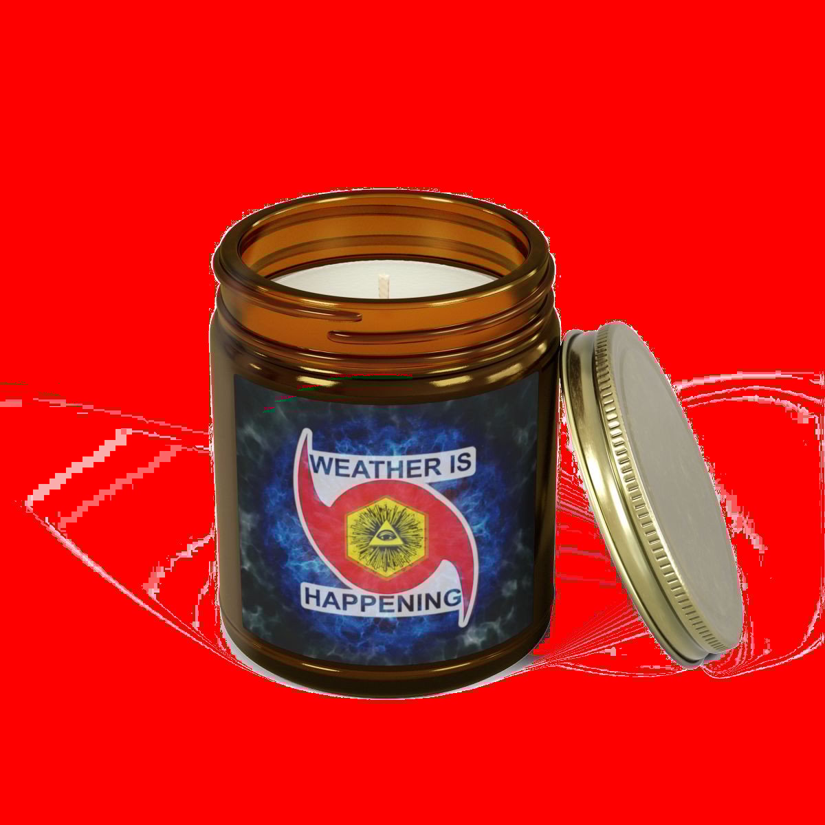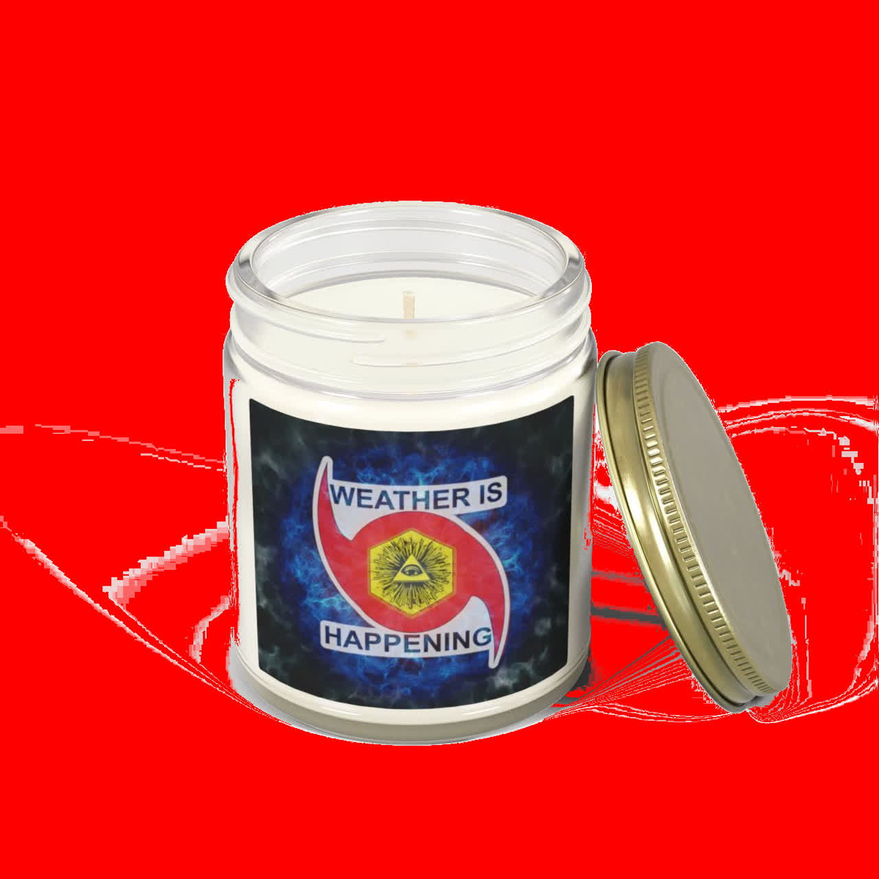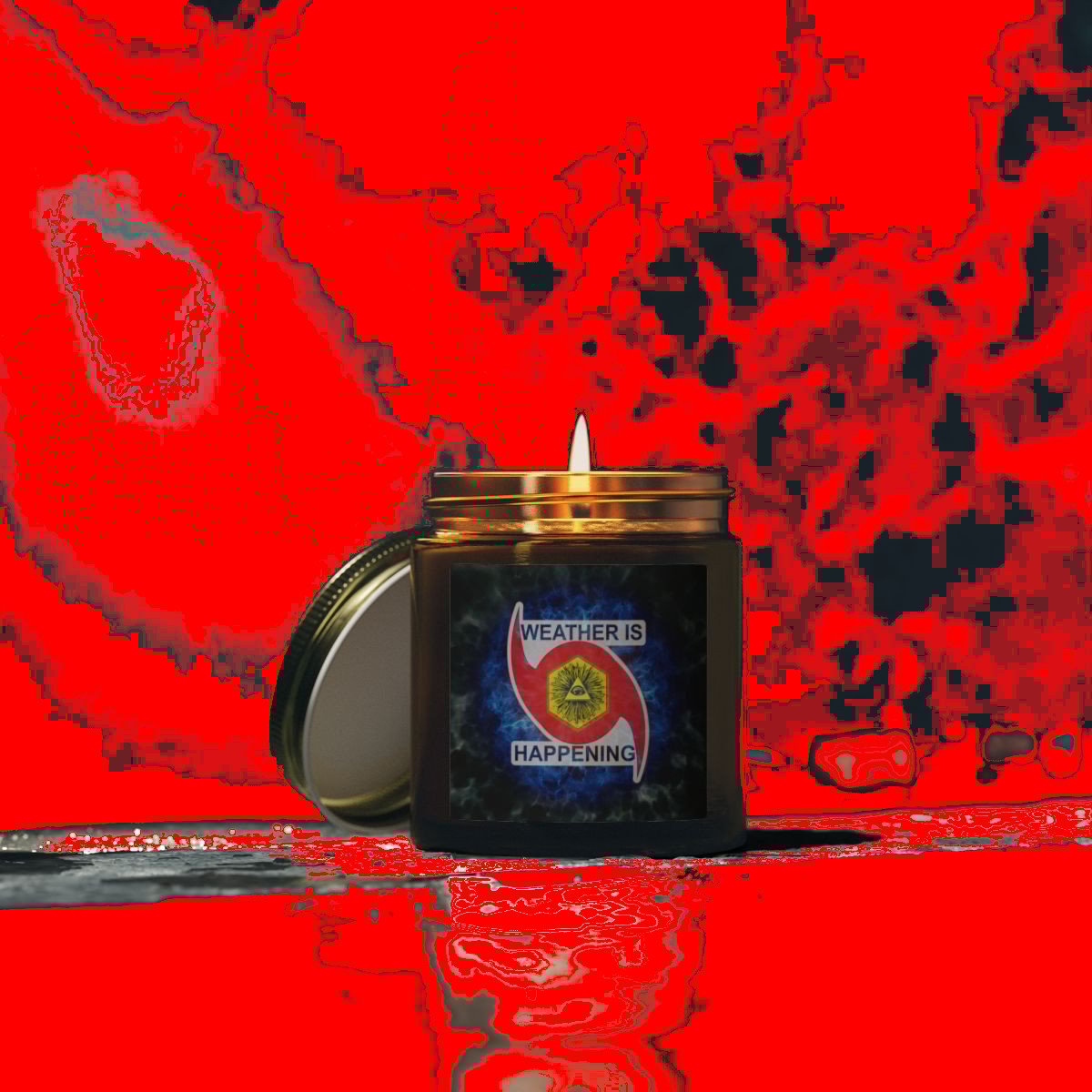 / NOW U CULD HAVE A CANDLE IN A JAR W/ A WEATHER IS HAPPENING LOGO