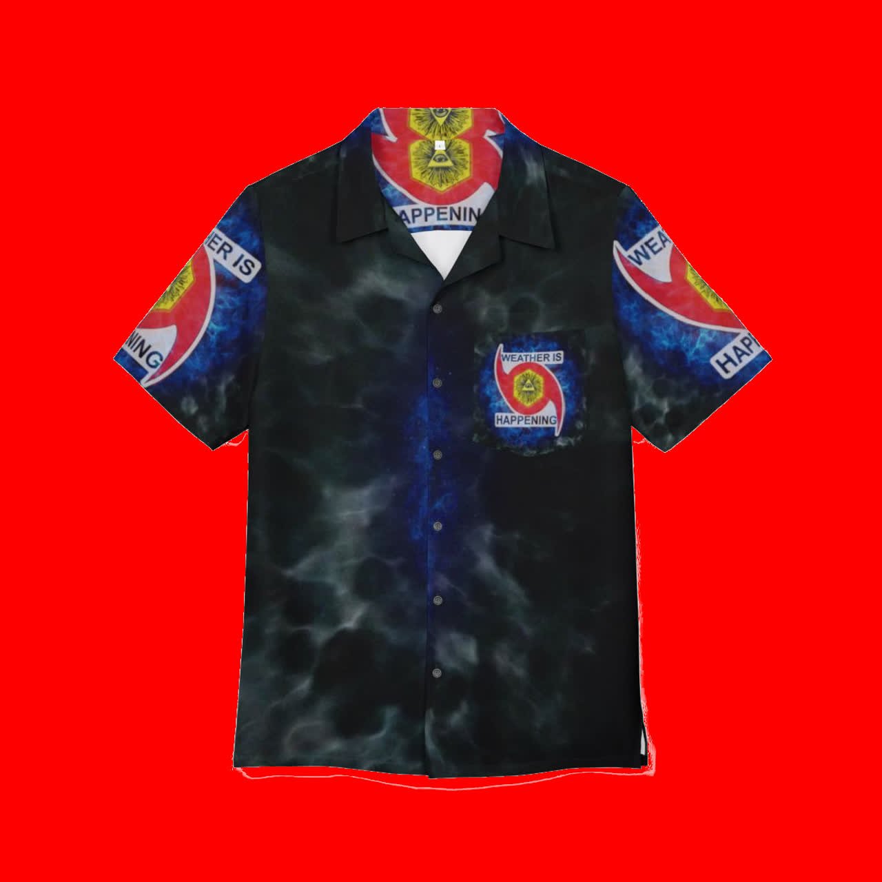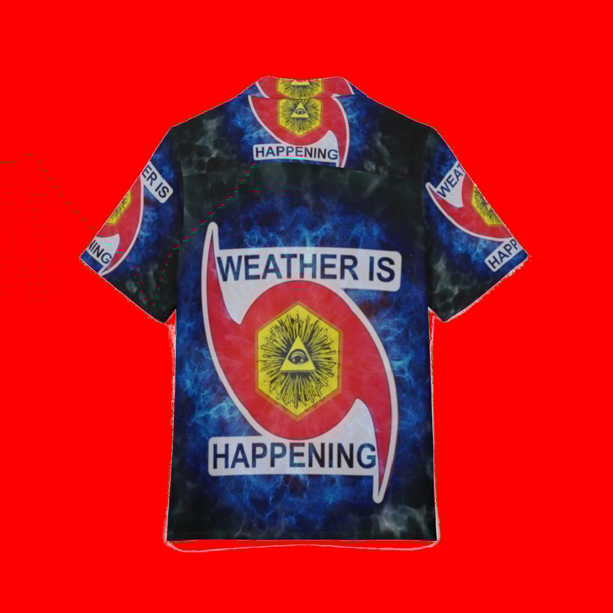THE WEATHER IS HAPPENING UNISEX HAWAIIAN BUTTON DOWN SHIRT