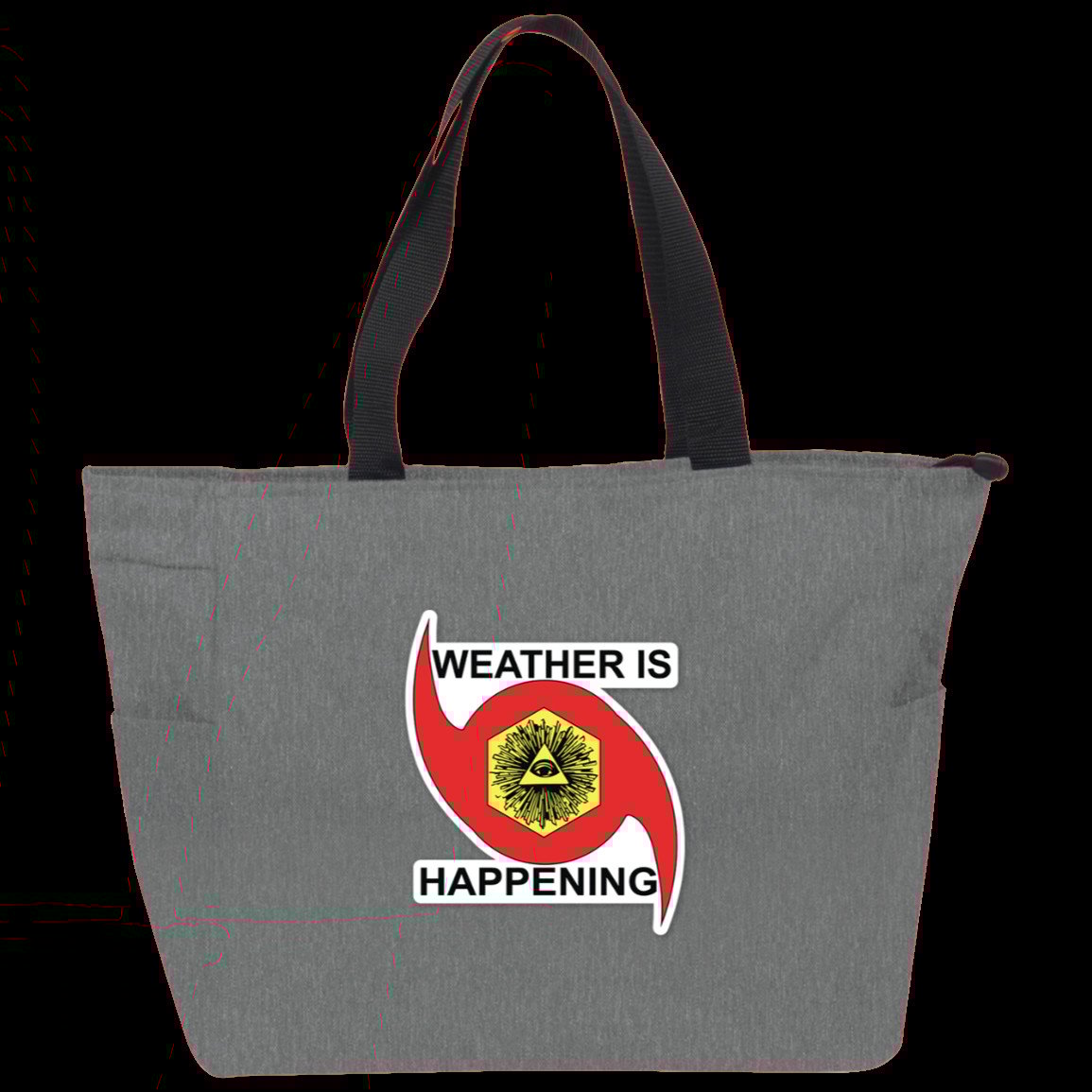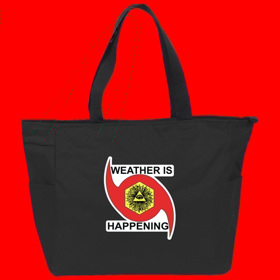 / Y NOT CARRY THEM AROUND IN THE WEATHER IS HAPPENING ZIP TOTE BAG