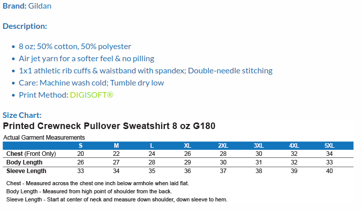 G180 GILDAN CREWNECK PULLOVER SWEATSHIRT